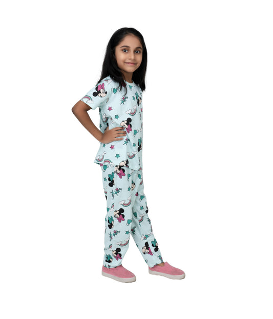 Kidilisious Cotton Rich Girls Pyjama Set in Green - Embrace Disney Dreams!