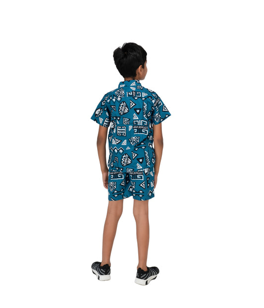 Kidilisious Kidswear Blue Abstract Coord Set: Shorts and Shirt Ensemble