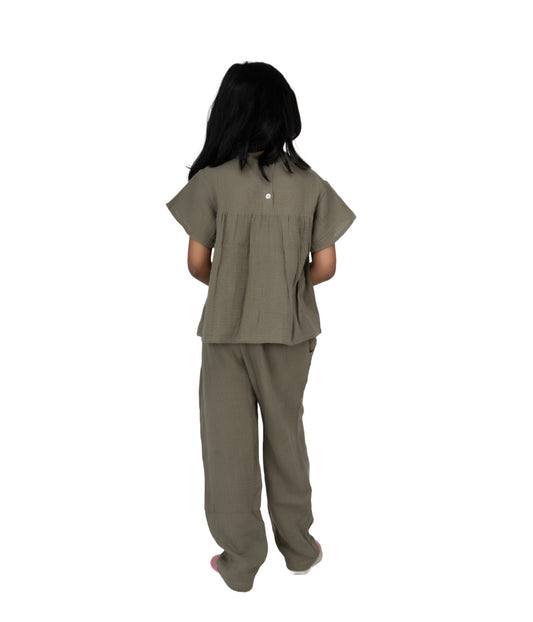 Green Muslin Embroidery Coord Set - Elegant Summer Ensemble for Kids