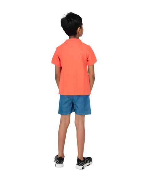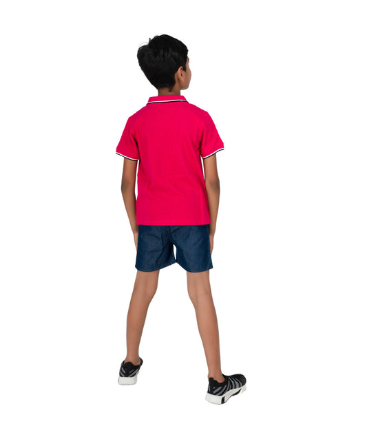 Kids' Coral Cotton Rich Collar T-Shirts with Embroidery.