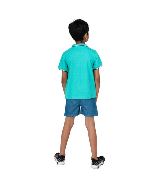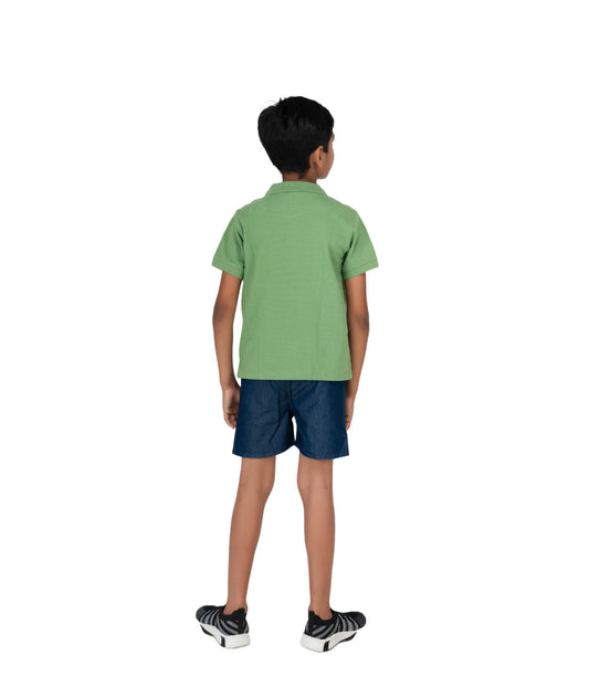 Kids' Green Cotton Rich Collar T-Shirts with Embroidery - Nature-Inspired Style!