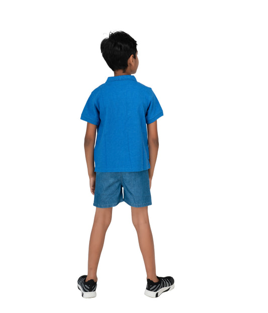 Kids' Royal Blue Cotton Rich Collar T-Shirts with Embroidery