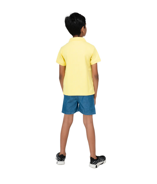 Kids' Sunny Yellow Cotton Rich Collar T-Shirts with Embroidery.